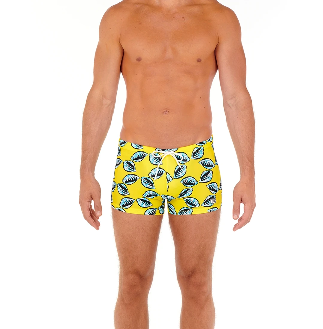 Shorty de bain imprimé coquillage jaune de la marque HOM