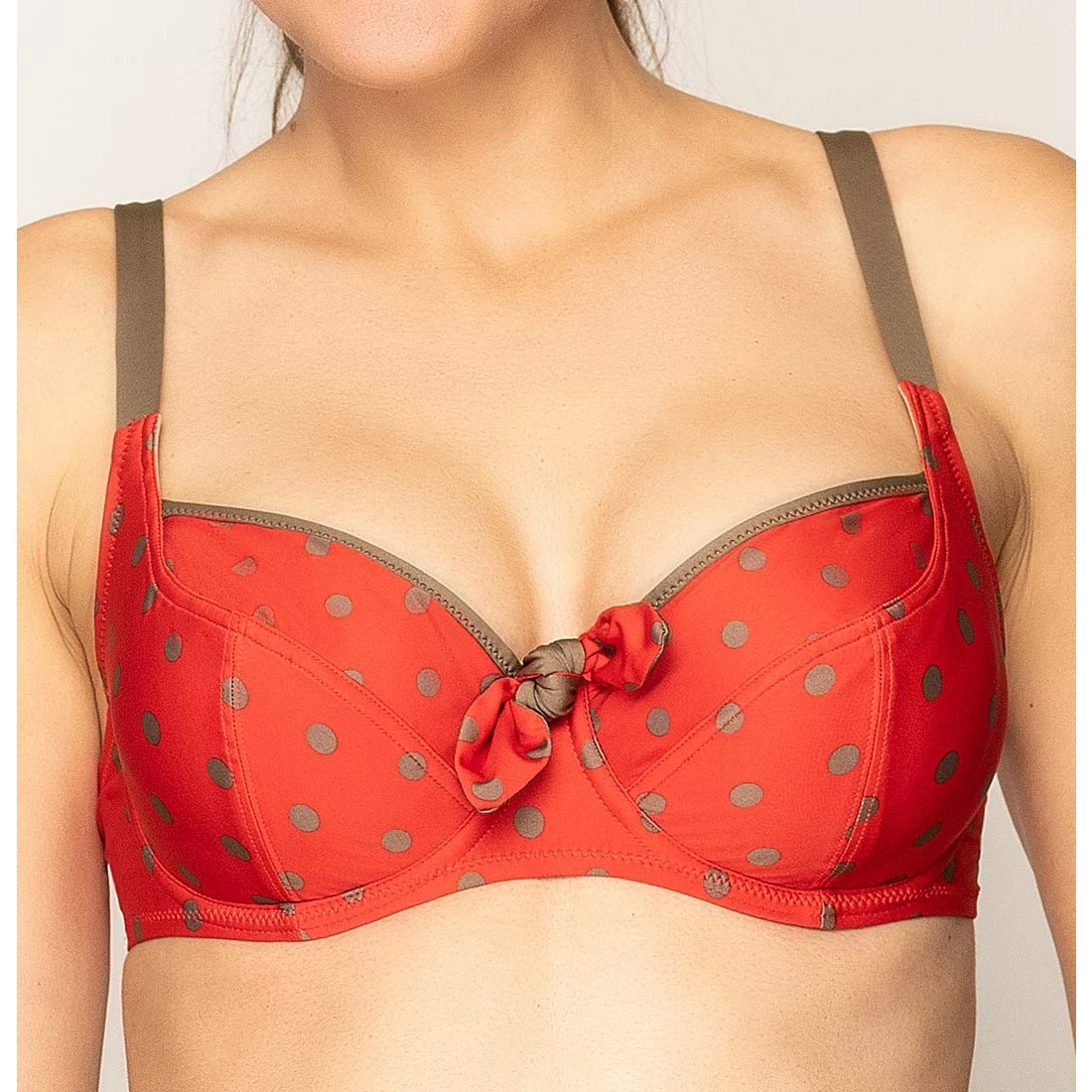 Maillot de bain armatures bonnet profonds Antigel à pois kaki fond rouge
